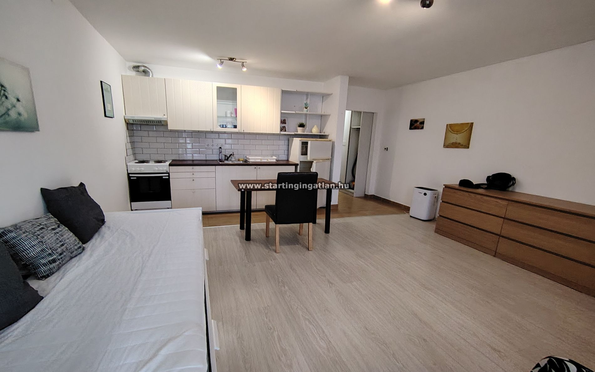Az ingatlan kifejezetten egy fő számára ideális választás. A modern amerikai konyhás nappali tágas érzetet ad, az étkezőrész pedig tökéletes helyszíne lehet a hétköznapi reggeleknek és az esti pihenésnek. A fürdőszobában tusolós kabin, mosdó Wc egy légtérben található, mosógéppel felszerelt. A lakás egyik legnagyobb előnye az alacsony fenntartási költség: a 12 500 Ft-os közös költség már tartalmazza a fűtést és a melegvizet is, így havi szinten kiszámítható és rendkívül kedvező rezsivel számolhat. A Telekom hálózata már bekötésre került, a fűtés pedig korszerű, hőszivattyús mennyezeti és fali rendszerrel működik, ami egész évben kellemes hőérzetet biztosít. A tulajdonos kifejezetten nyitott hozzáértő, felelősségteljes bérlőre, és kistestű állatot is szívesen fogad. A lakás 220 000 Ft havi bérleti díjjal, két havi kaucióval és egy havi bérleti díjjal költözhető — egy ilyen állapotú és elhelyezkedésű garzon esetében ez valóban kiváló ajánlat.